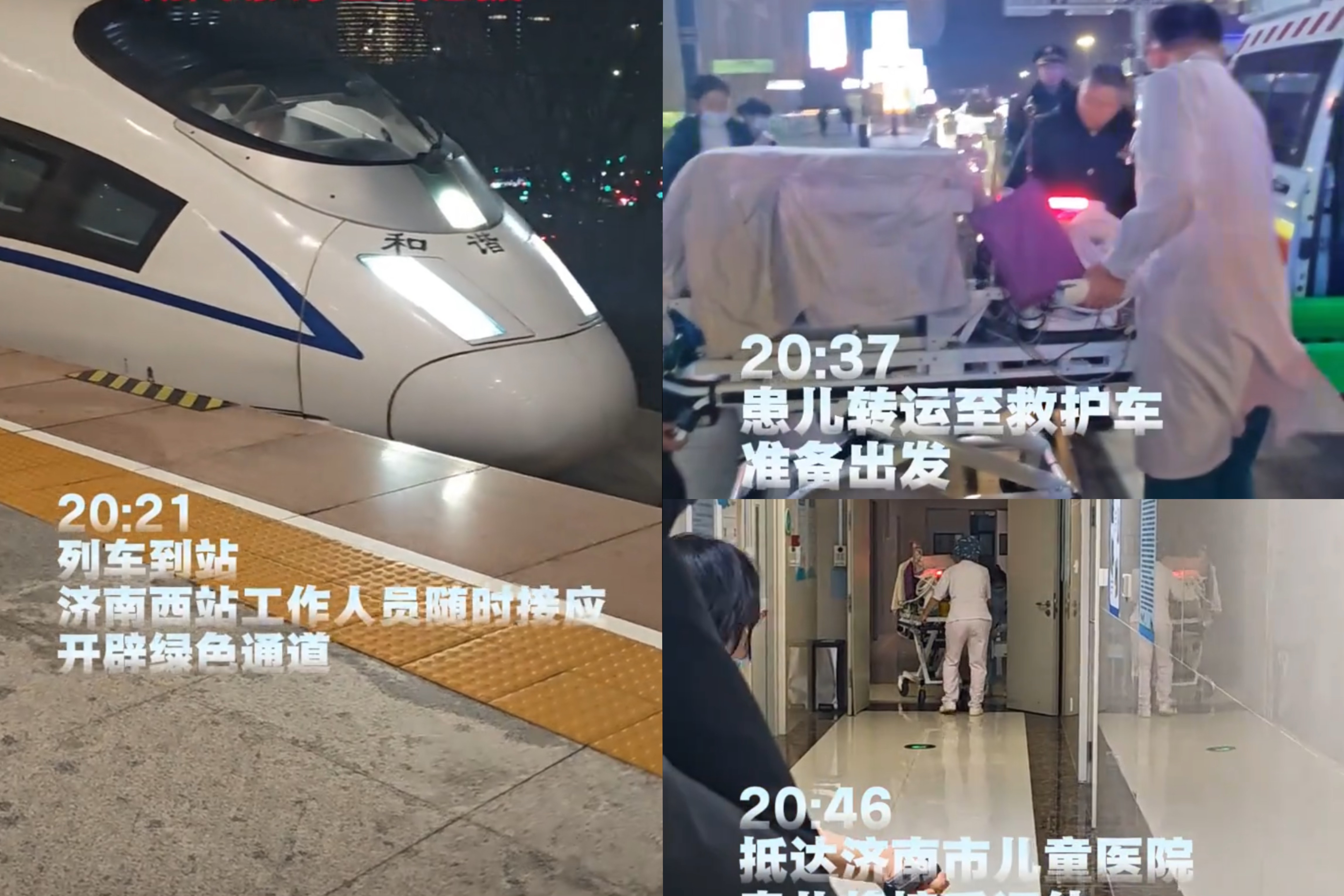 接到转诊请求后,山东大学附属儿童医院高度重视,新生儿科与济南市120转运团队连夜制定周密方案。时值寒冬,临近大雪,转运团队精选保暖转运担架与专业设备,在济南交警、铁路部门的通力协作下,开启生命绿色通道。从昆明乘高铁至济南西站,再到仅用时十分钟便迅速抵达医院,多方联动无缝衔接,1月16日晚,小文安全抵达新生儿科重症监护室。