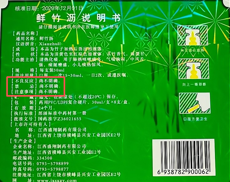 市民李先生则表示,自己更倾向于选择中成药,此前家中常备的“鲜竹沥”口服液三项安全信息均为“尚不明确”,家人曾有顾虑,“不过现在药店卖的同款产品已经更新了说明书,标注得很清楚了。”