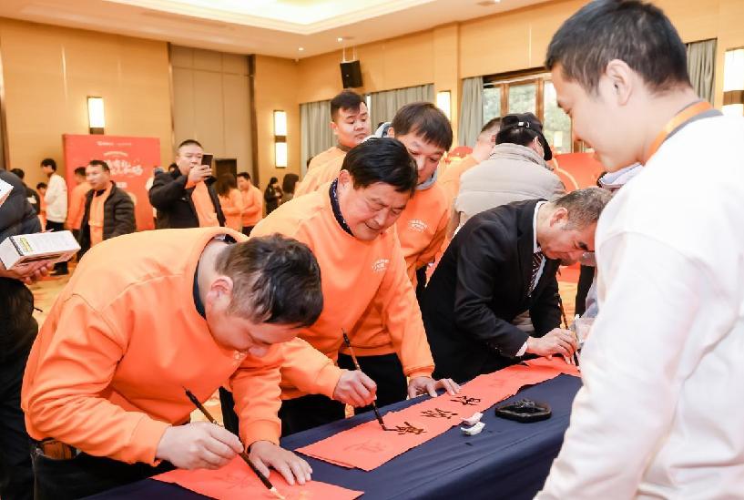 家宴现场暖意融融,滴滴司机师傅们携家属欢聚一堂,沉浸式逛游园会,趣玩猜灯谜,写春联做糖画,在镜头前定格全家福的幸福瞬间,围坐共享特色年夜饭,欣赏热闹的新春表演,表彰致敬优秀司机……处处洋溢着团圆的温情与新春的喜悦。