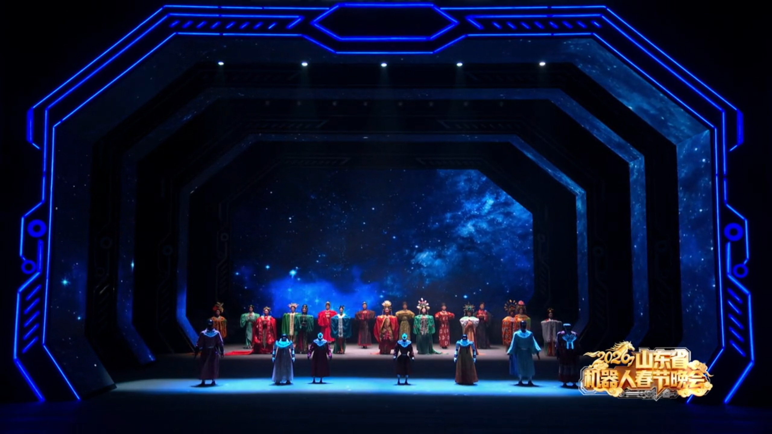 2026年2月14日晚,2026山东省机器人春节晚会在山东济宁大剧院璀璨上演。这场由山东省机器人行业协会主办的科技盛宴,集结了14家企业、200余台各型机器人,呈现了19个涵盖舞蹈、武术、戏曲、相声等多元形式的原创节目。晚会以“智能赋能文化,科技点亮新春”为核心理念,不仅展现了国产机器人产业化的最新成果,更在硬核科技的炫酷外壳下,注入了澎湃的青春活力与人文温度。从无人机绘就的星河开场,到人机共舞的默契瞬间,再到传统非遗与AI算法的奇妙碰撞,整场晚会如同一曲由钢铁与代码谱写的青春乐章,让千年齐鲁文脉在智能时代焕发出前所未有的朝气与魅力。