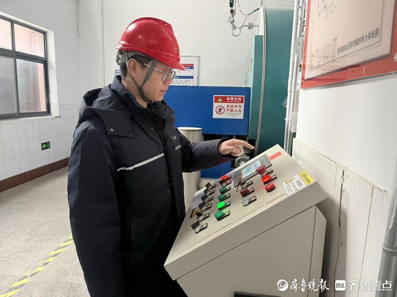 面对济南多变的天气,杨金澎时刻关注着天气预报。“供热是‘看天吃饭’的技术活。”他解释道,在寒潮来临前,必须主动提前调控锅炉出水温度,确保用户家中温度不降。这个春节,他的巡检路线覆盖3个站点(含锅炉房),脚步穿梭于设备间与老旧楼宇之间,在寂静的节日社区里,绘制出一张动态的“供热保障网络图”。